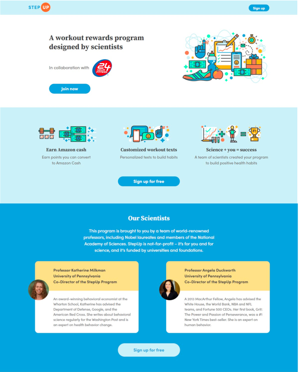 Members of a national gym chain were asked if they wished to enrol in a “habit-building science-based workout program”. Those who signed up formed the subject pool and were randomly assigned to the experimental conditions, including a control under which they received no further contact.